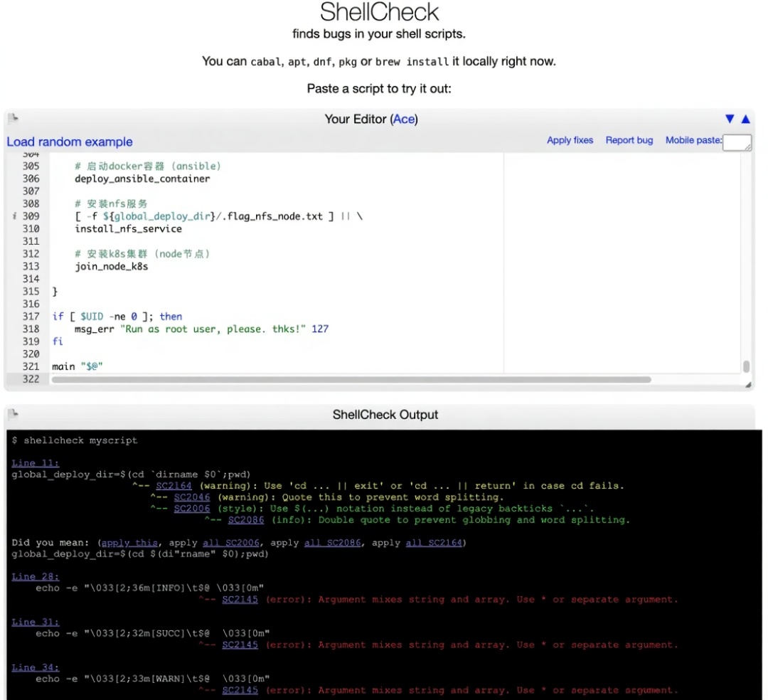 ShellCheck 在线服务地址:https://www.shellcheck.net