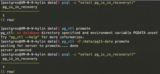 psql -c "select pg_is_in_recovery()" # 查看是否处于恢复模式