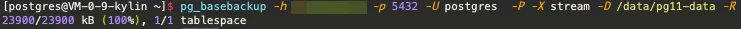 pg_basebackup -h <主库IP> -p 5432 -U postgres -P -X stream -D /data/pg11-data -R