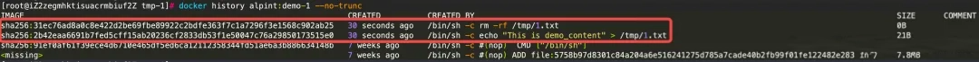 # 指定 RUN 指令(两条命令,分别实现创建文件、删除文件)RUN echo "This is demo_content" > /tmp/1.txtRUN rm -rf /tmp/1.txt